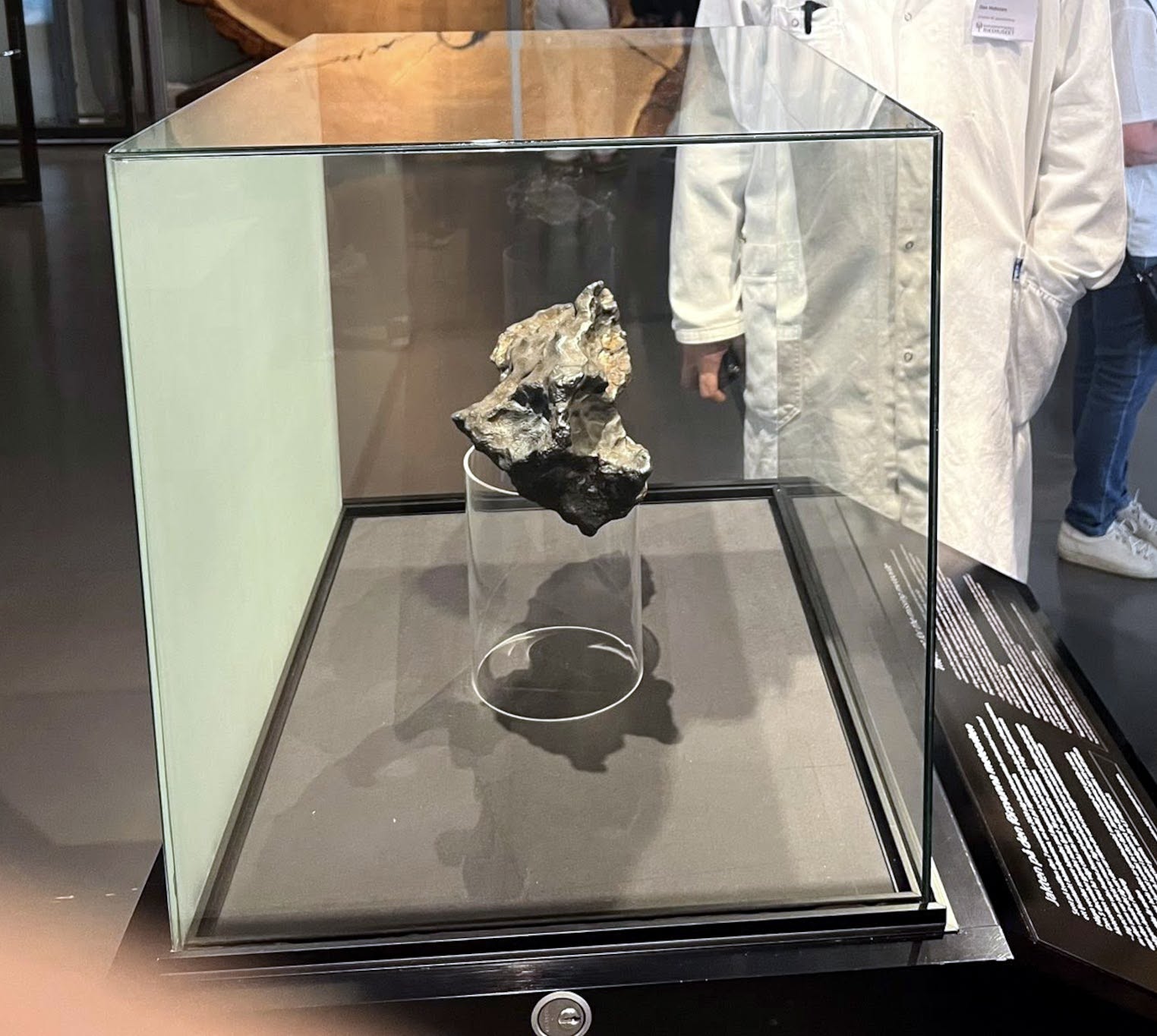 The meteorite in a glass case during its first public presentation on ‘Geology Day’ (13 September 2025). Photos: Naturhistoriska riksmuseet