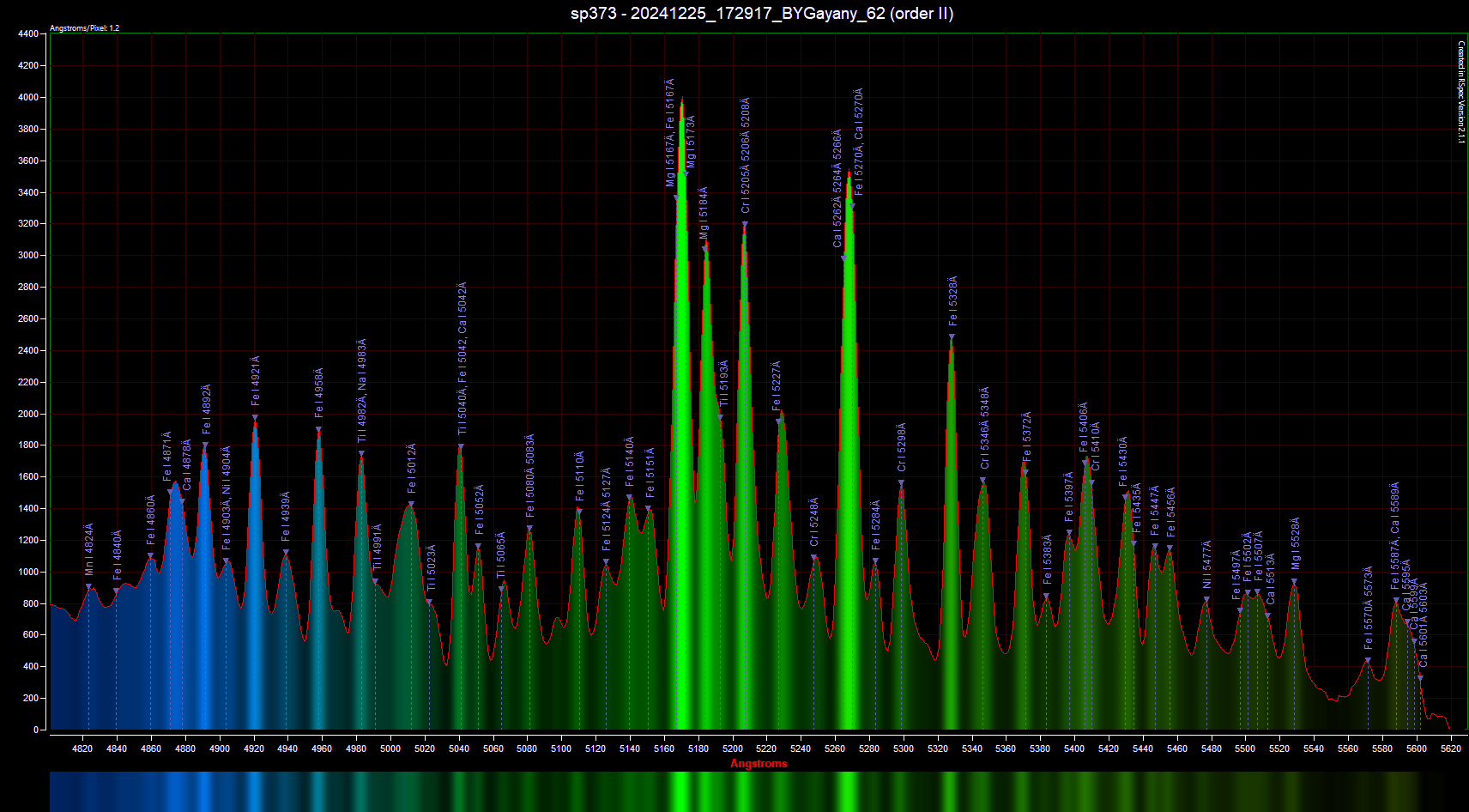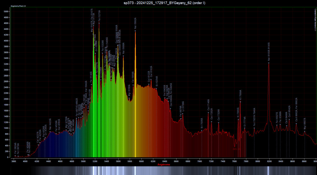 Spectra of luminous trail, recorded by the Gayany camera. Photo: Alexander Mikulich