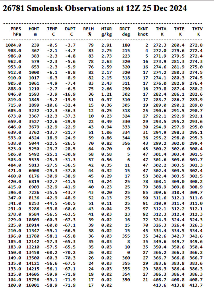 Wind and weather data from Russian Smolensk weather station on 25 December 2024. Image: Alexander Kulich