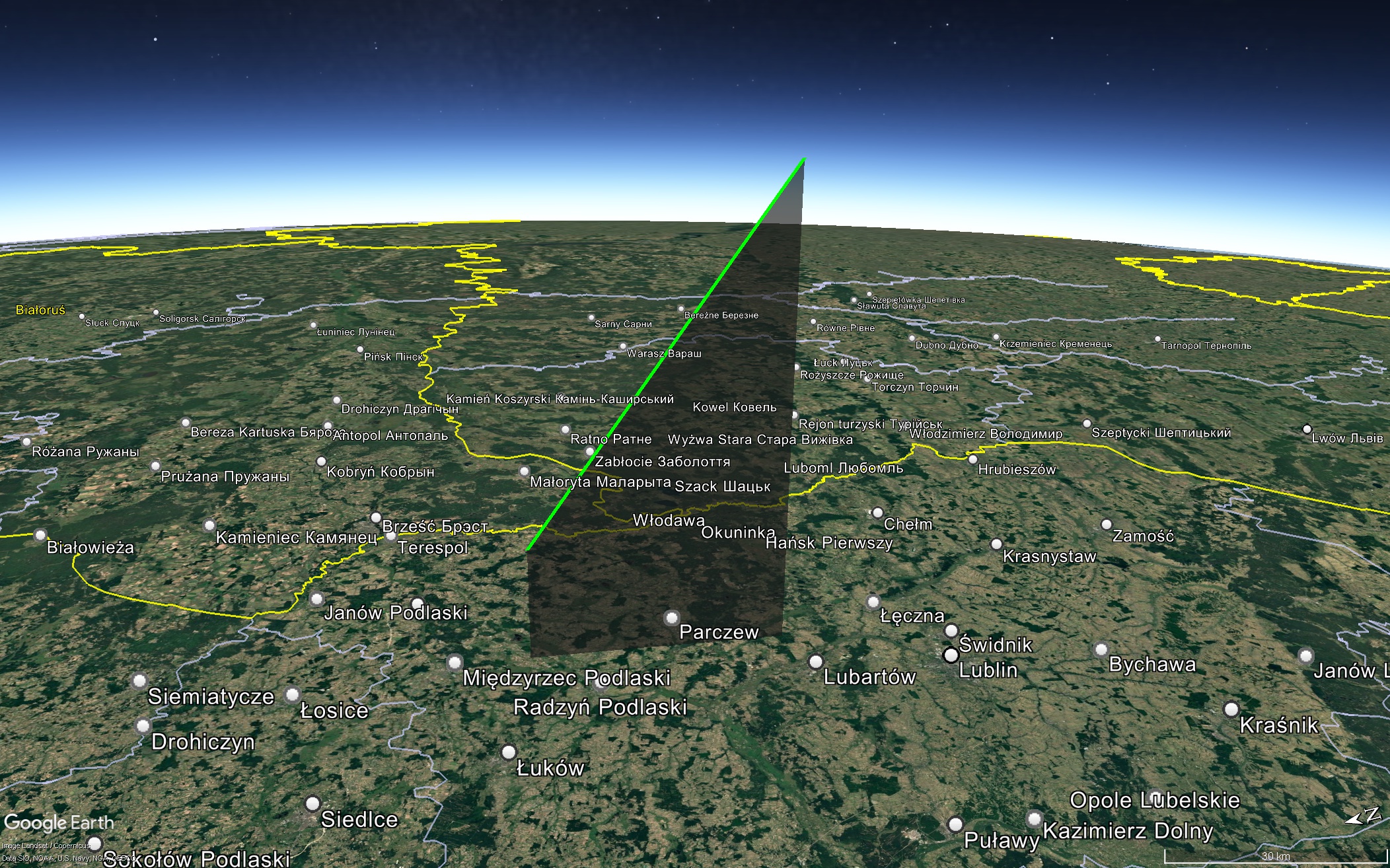 The position of the fireball relative to the stations whose recordings were included in the analysis. Image: Mateusz Żmija