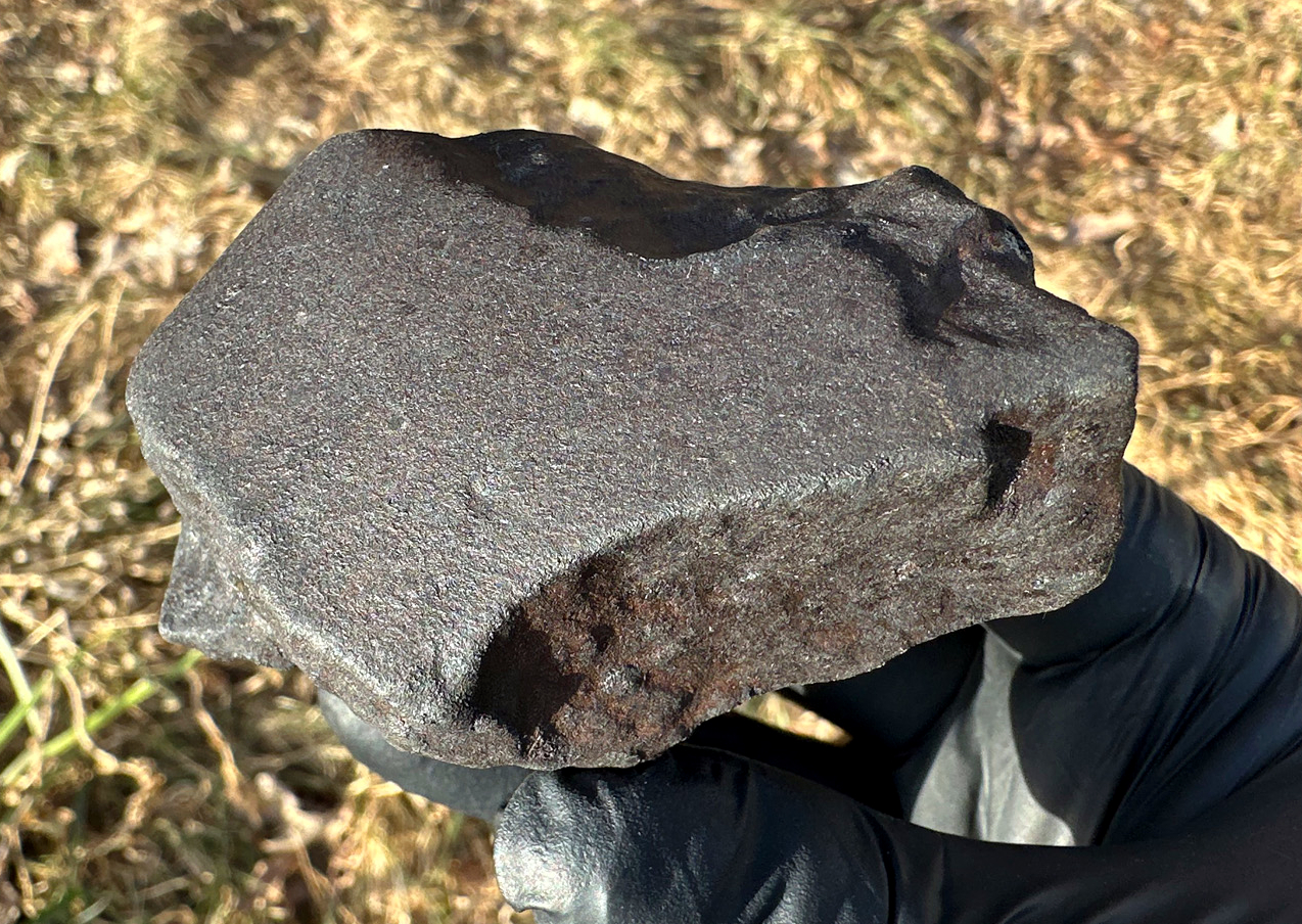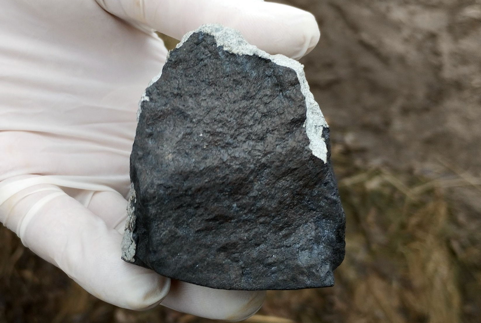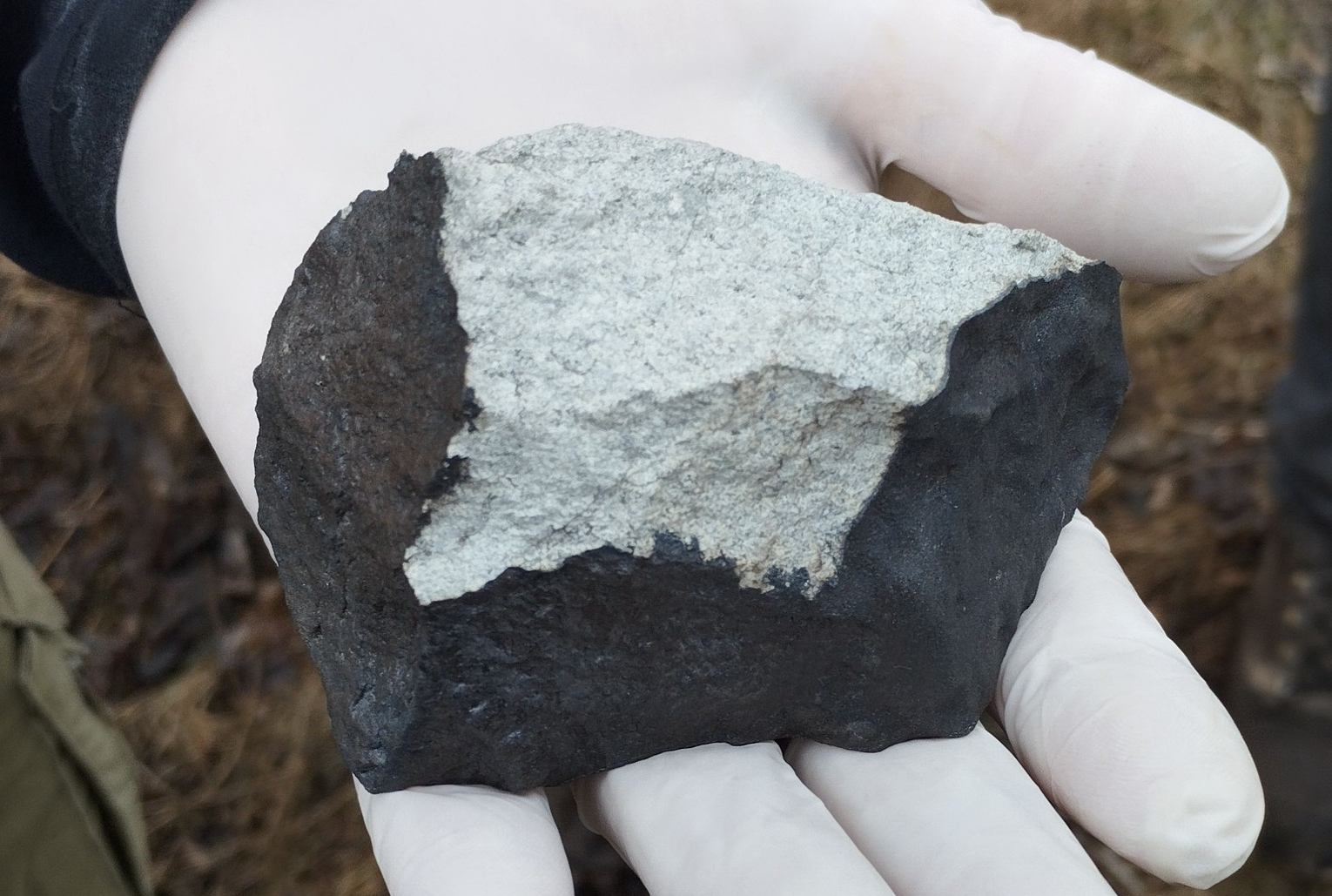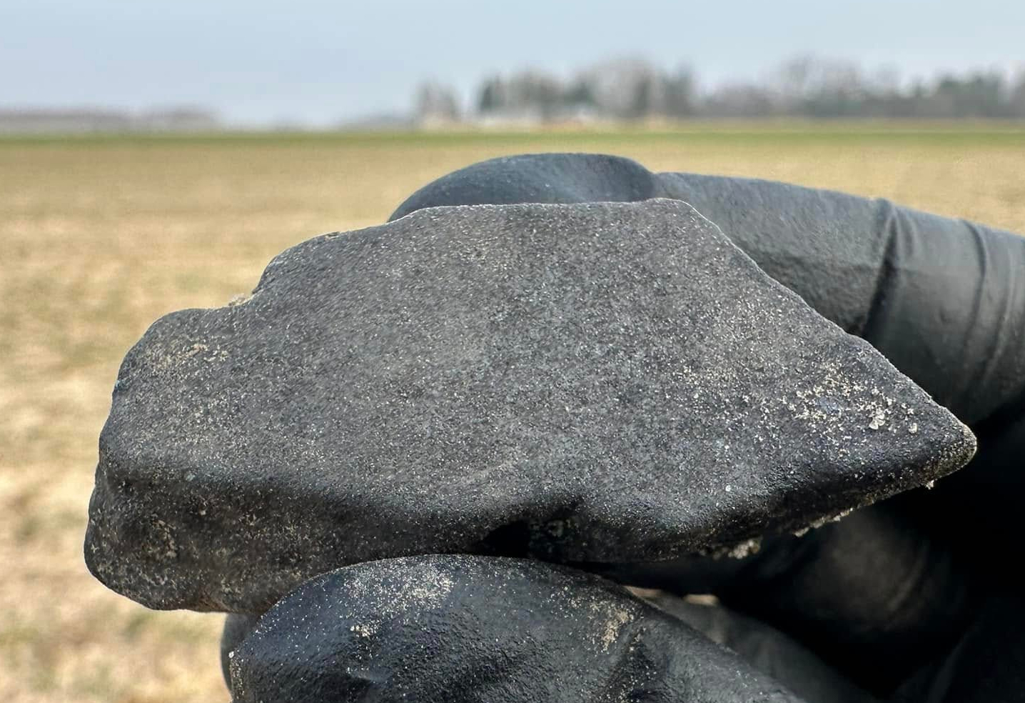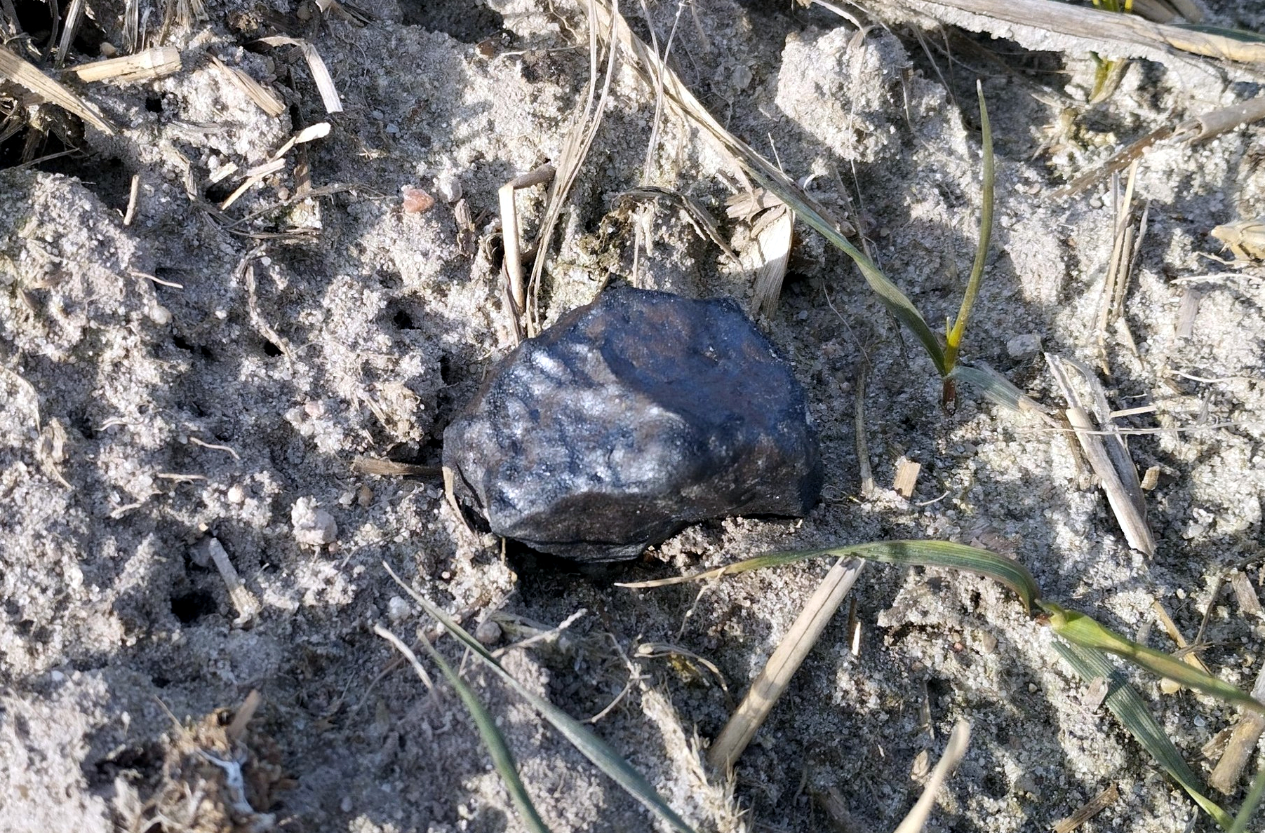A 66.6-gram mass found on 26 February 2025 by Michał Nebelski. Photo: Photo: madeinspace.pl