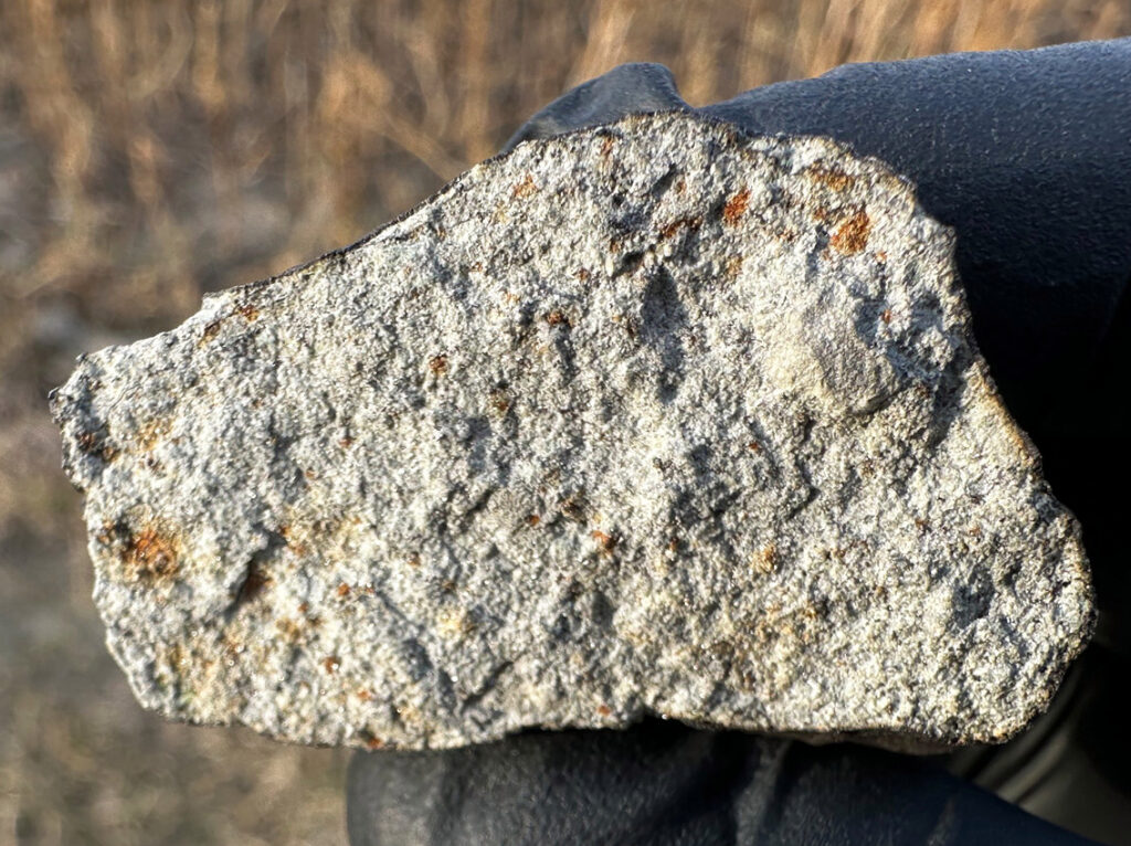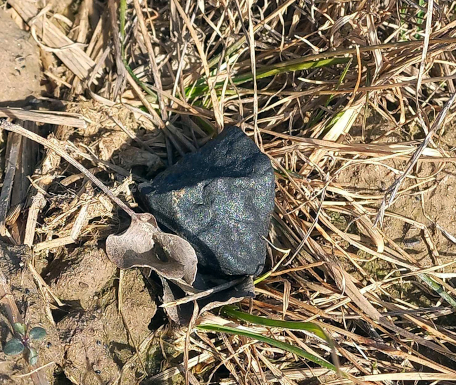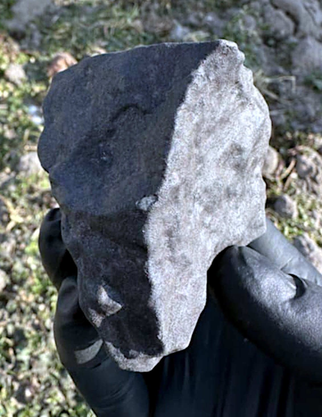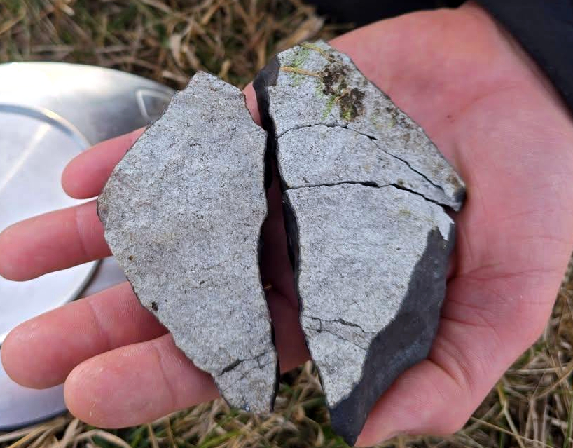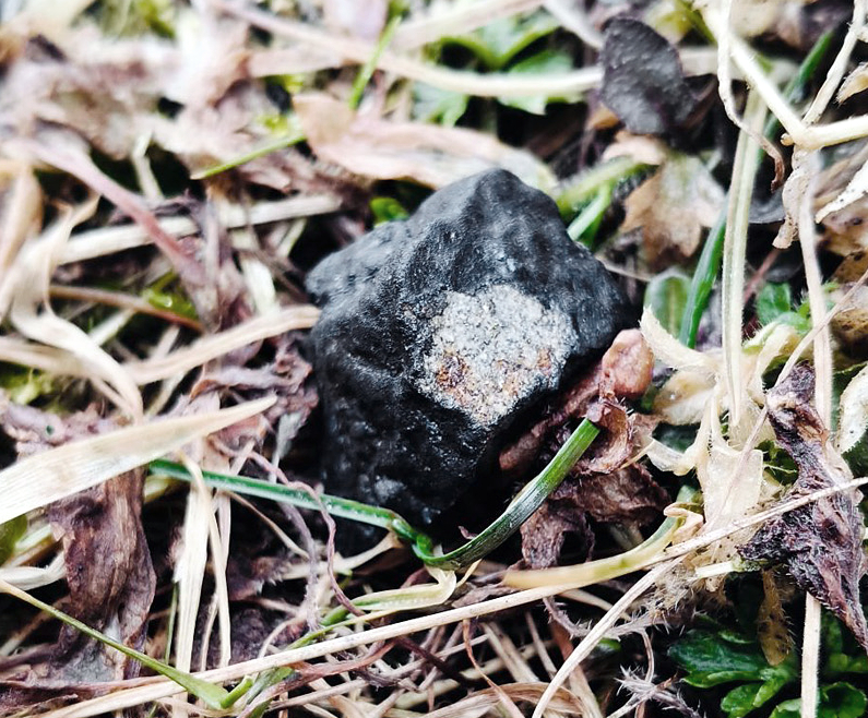 77-gram mass in situ found by Kryspin Kmieciak on 24 February 2025. Photo: Kryspin Kmieciak