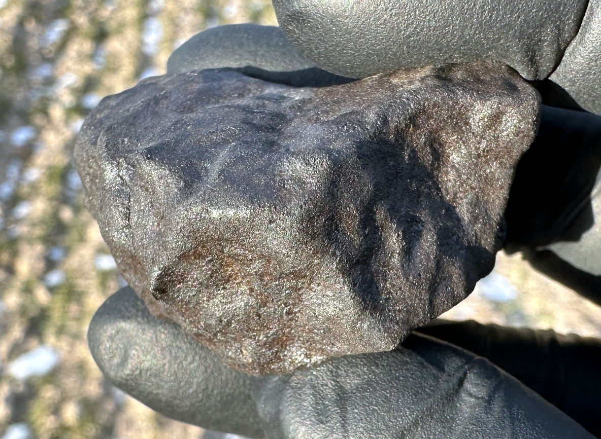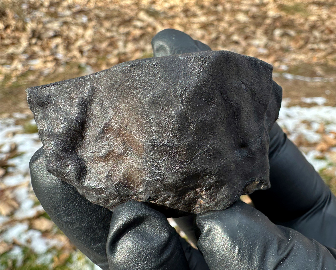 28-gram mass found by Filip Nikodem, Michał Nebelski and Andrzej Owczarzak on 24 February 2025. Photo: Andrzej Owczarzak