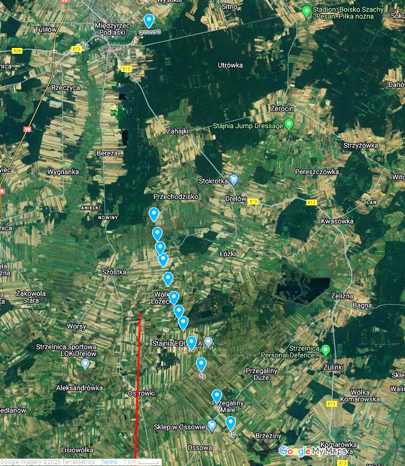 Skytinel strewn field map as published on 4 March 2025. Dark flight calculations have been performed by Mateusz Żmija, Kővágó Gábor and Prof. Szymon Kozłowski. Image: Skytinel Interactive online version