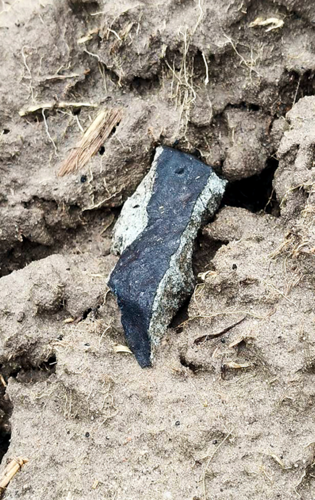 179-gram mass (25 February 2025, Zoltán Balla), which fits perfectly to the three fragments found by Kryspin Kmieciak on 26 February 2025, about 500 metres away (see below).