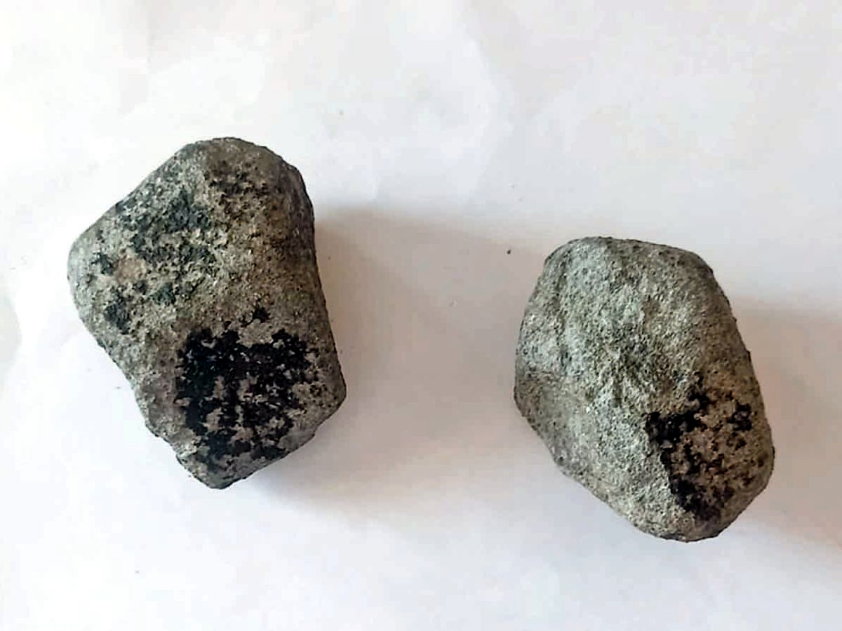 The two masses which will be analysed at the Geological Survey of India. The one on the lfet fell through the roof and the one on the right was found in a barren field nearby. Photo: APJ Abdul Kalam Astronomy and Space Science Center