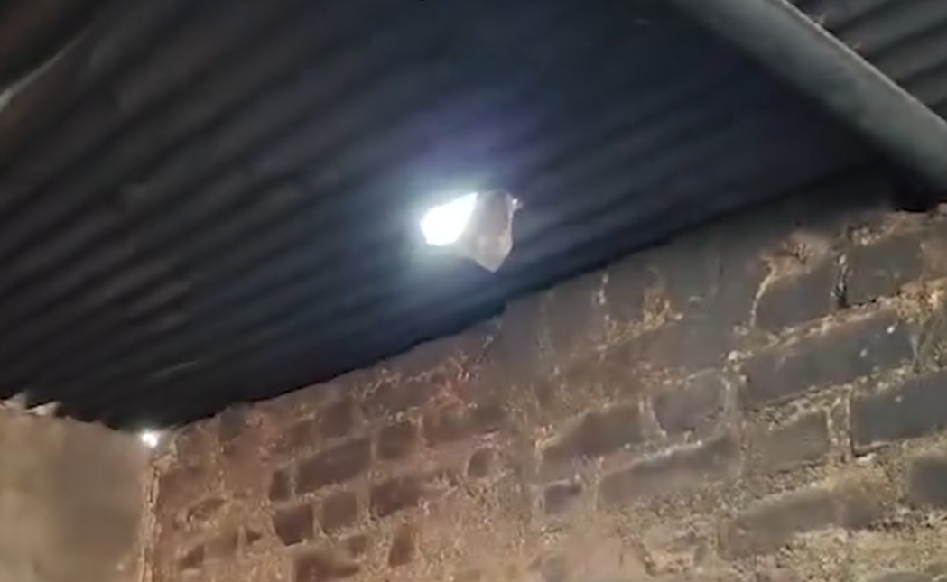 Impact hole in Bhikaji Ambhore’s roof. Image: Pudhari News