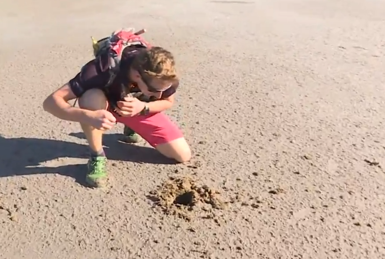 Dr Hadrien Devillepoix having just found the impact hole of a third meteorite mass. Image: 9News