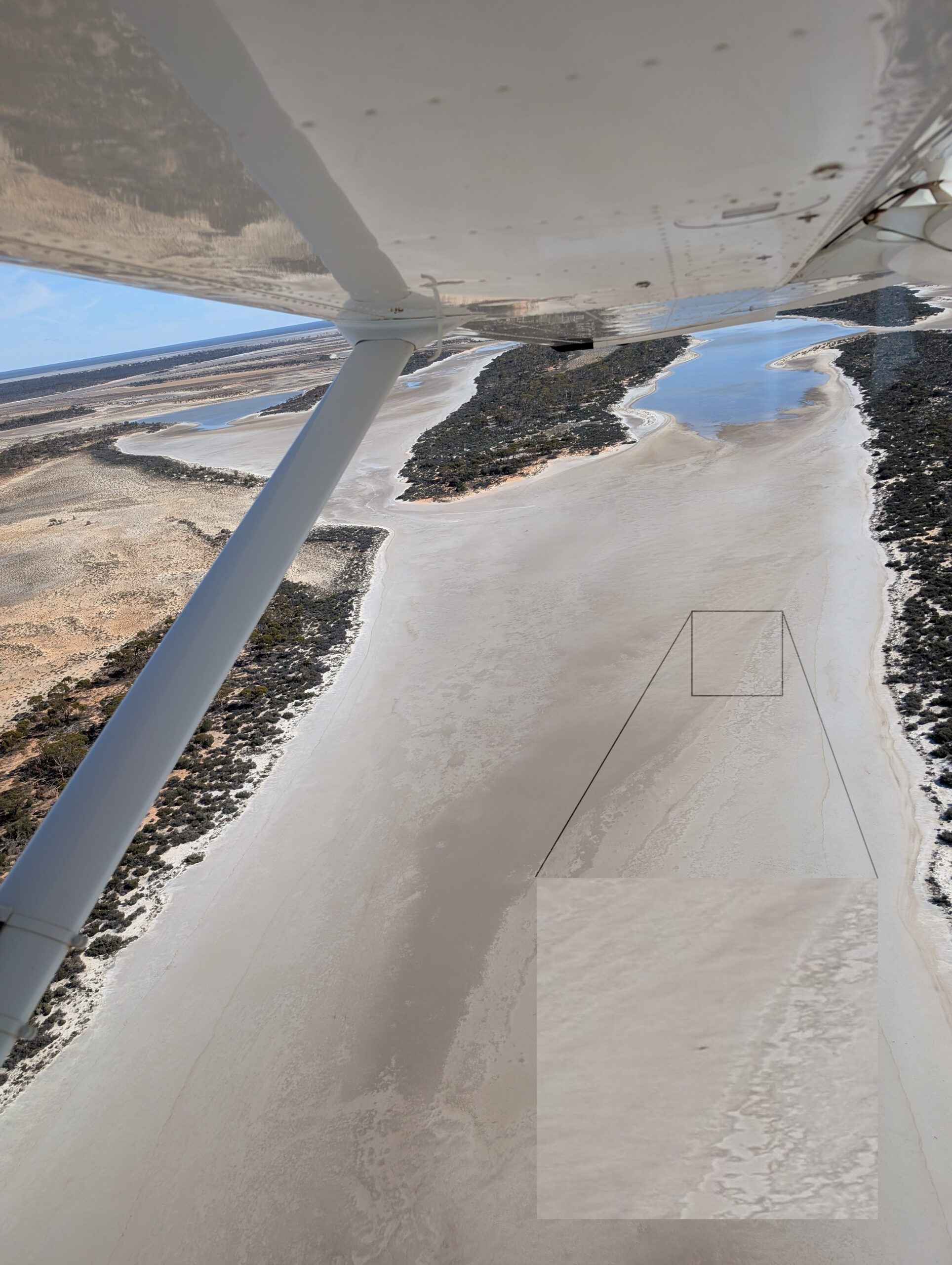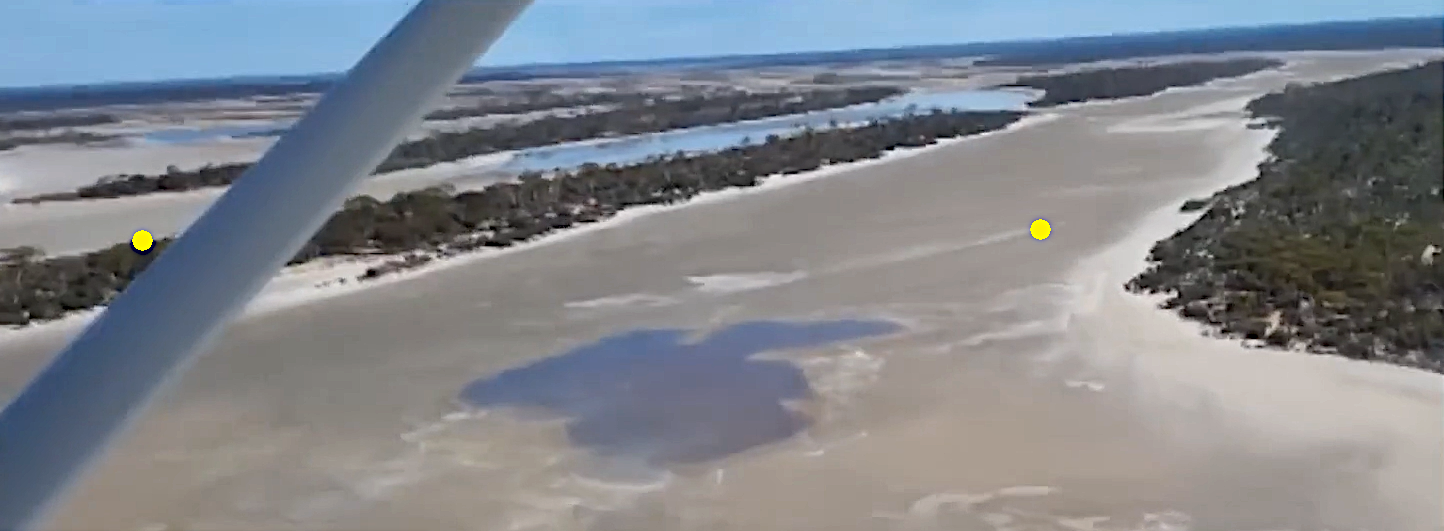 Approximate fall locations of Pindarri Punju Puri #2 (left) and #3 (right) meteorites on the salt lake. Image: DFN