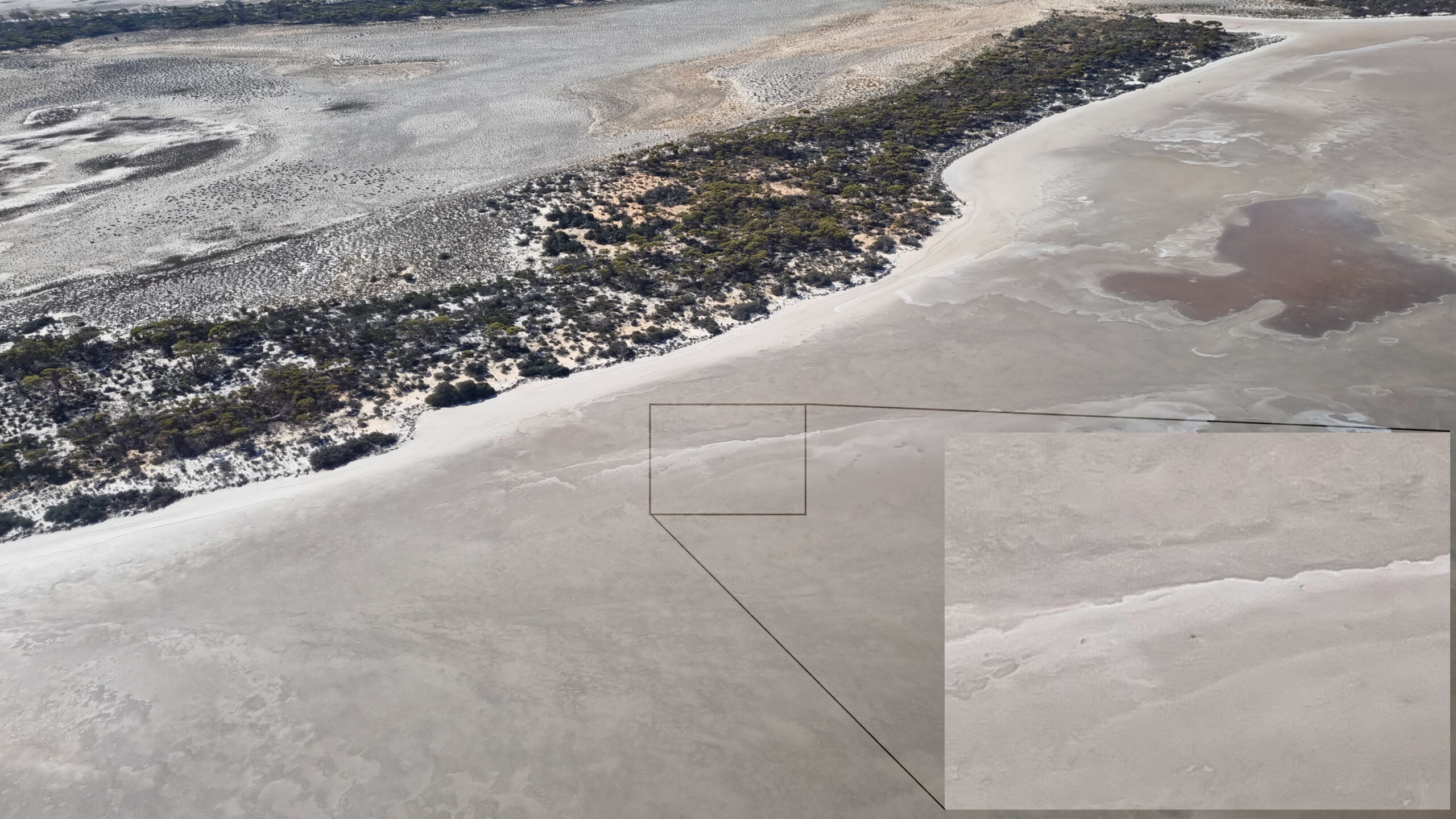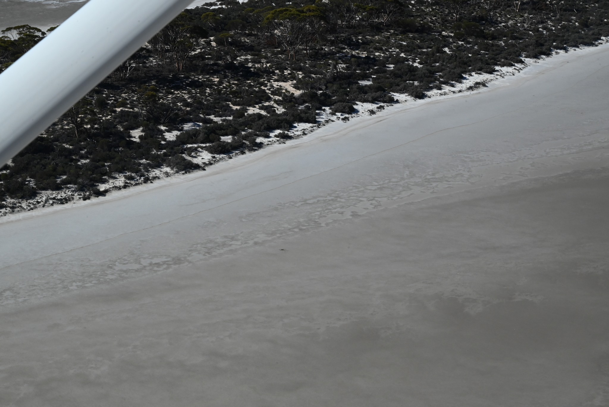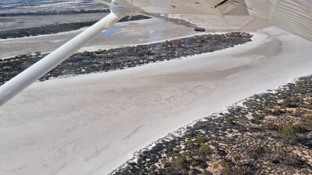 A 450-500-gram meteorite (LL ordinary chondrite) with a size “just under a tennis ball” and a “sort of a greeny” interior of the bolide of 10 May 2025 (21:57:30 UTC / 5:57:30 a.m. AWST, 11 May 2025) was found by Ravensthorpe police officer and amateur meteorite searcher Marcus Scott on a dry surface area of the partly water covered Lake Hope, a salt lake in the western Ngadju Indigenous Protected Area in the western Shire of Dundas, west of Norseman on 17 May 2025, most likely very close to location 32°33’36.9″S 120°23’09.7″E, which would be in the centre of the calculated fall area, published by the Desert Fireball Network. The meteorite was found after only four hours of search on foot. It fragmented into several smaller pieces (blown away mainly from the sky-facing part of the meteorite) on impact while the main fragment (ground-facing part of the mass) caused one small impact pit in the dry salt lake surface. Scott picked the meteorite fragments up with fresh rubber gloves and put them into clip seal bags. He says he found the meteorite “thanks to the very smart people at Curtin Uni that have got the desert fireball system. They posted online their sort of estimated sort of ground of where it fell. And yeah, it was a beautiful day on Saturday so I went for a walk.” The Desert Fireball Network had created a map of the calculated possible fall area and published it online on 11 May 2025. The bolide’s trajectory, the dark flight trajectory and the possible impact location had been calculated by experts from Curtin University’s Desert Fireball Network. DFN’s Dr Eleanor Sansom and Dr Hadrien Devillepoix were actually flying above the impact site during their first aerial reconnaissance mission at the moment when Scott found the meteorite. They learned about the find from the media on 18 May 2025. They had also spotted two additional potential fall sites which could be less than two kilometres away (within the calculated fall area) from the site where Scott found his mass. The approximately nine-second luminous trail of the bolide, travelling south at a very shallow angle, revealed several flares or fragmentation events. It reportedly extinguished at an altitude of about 26 km. The meteoroid is reported to have had an unusual pre-atmospheric orbit in the inner solar system. A few days later Dr Hadrien Devillepoix and other researchers from Curtin University went back to the predicted fall area and found two additional meteorite masses within the calculated fall area, the first one (Lake Hope #2) weighing around 400 grams, most likely near location 32°32’59.9″S, 120°24’03.6″E. The second meteorite of the day (Lake Hope #3), a fully fusion-crusted specimen, was found at around location 32°32’45.8″S 120°24’00.6″E, about 440 metres south of the fall site of Lake Hope #2 and about 2 kilometres northeast of the fall location of Scott’s find (Lake Hope #1). On impact the two new finds both sank deeper into the lake bed (~ 10-15 cm) than the meteorite found by Scott, most likely because the sand was softer and wetter. Shortly after the fall we mentioned that we would appreciate having this meteorite fall registered in the MetSoc Bulletin under an indigenous Ngadju place name for the ‘Lake Hope’ area to honor the Ngadju language which is severely endangered to become extinct. With great pleasure we learned that on 1 July 2025 it was announced by the DFN that this meteorite fall will be given the indigeneous name ‘Pindarri Punju Puri’. The meteorites have been analysed and classified as LL chondrites at Curtin University’s Space Science and Technology Centre (SSTC) and at Monash University, as published on the DFN website on 10 June 2025. It is planned to have them publicly exhibited at the WA Museum in the future. Congratulation to Marcus Scott and DFN on their discoveries! A fragment of the first found meteorite mass has been on display at Western Australian Museum Boola Bardip’s Origins Gallery in Perth since the 28th week of 2025.