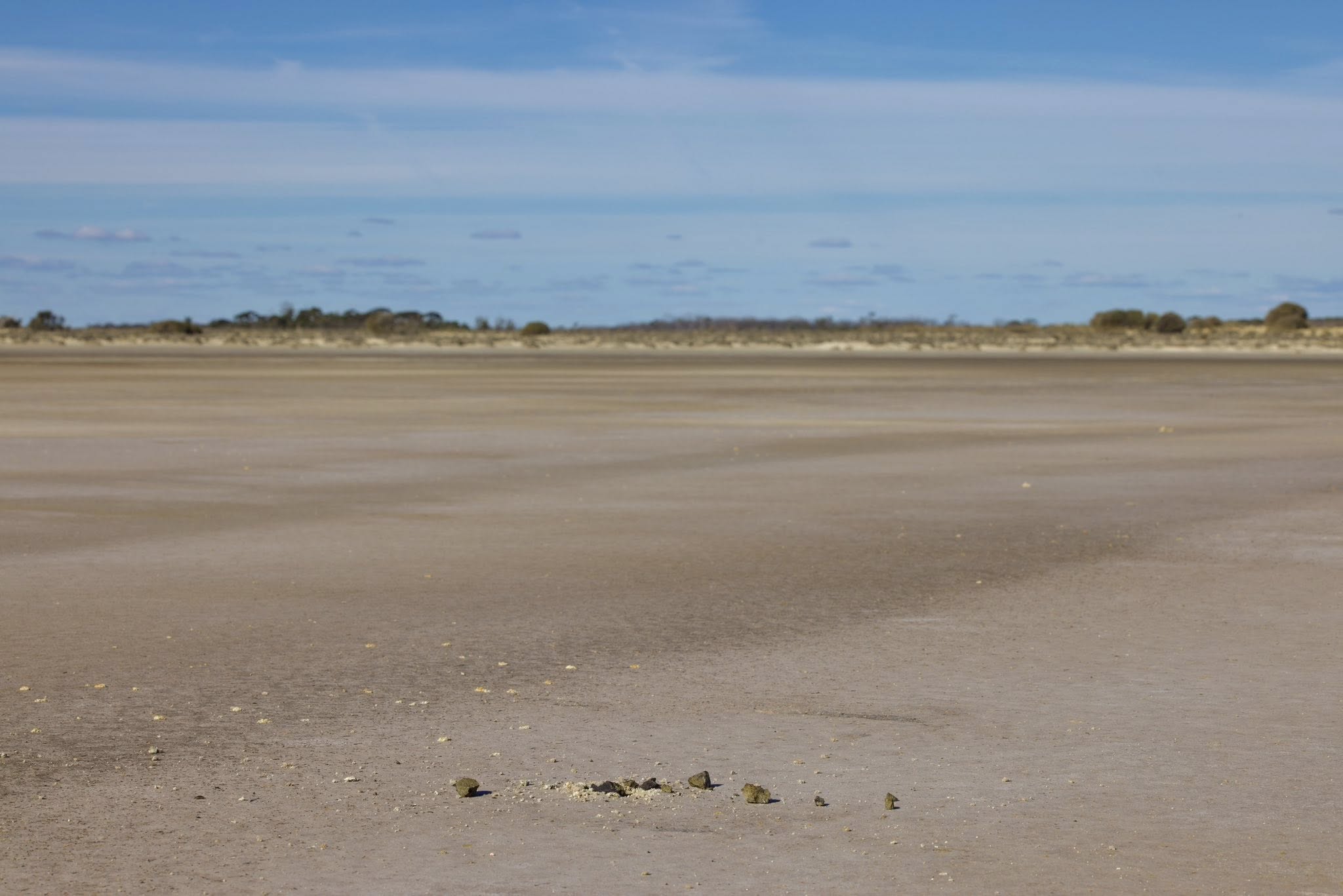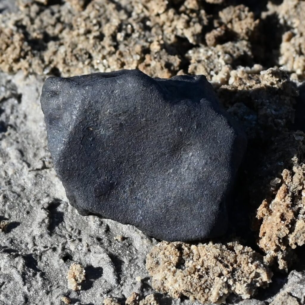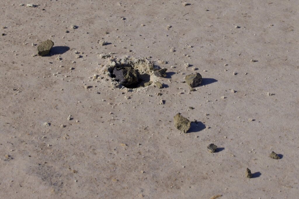 Meteorite fragments at the impact location on the salt lake surface. Photo: Marcus Scott