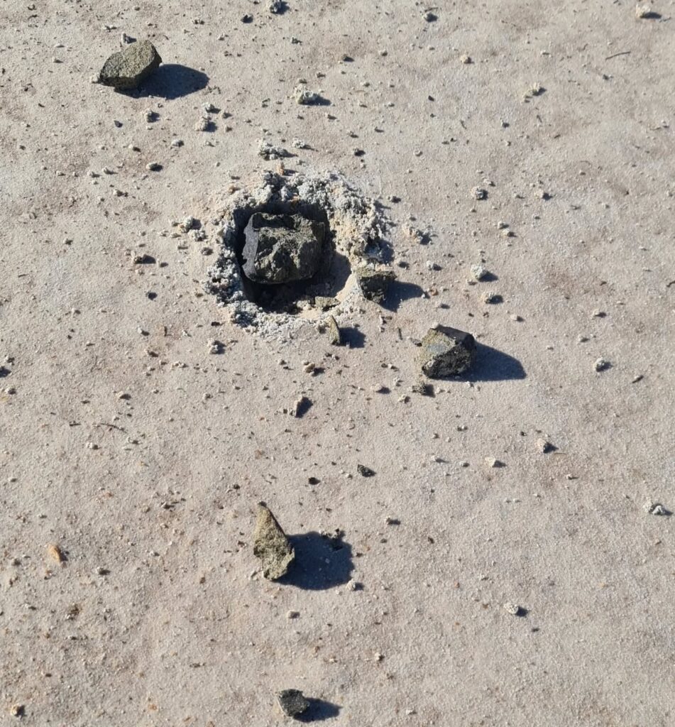 Impact hole of the second find after removal of the meteorite. Image: 9News