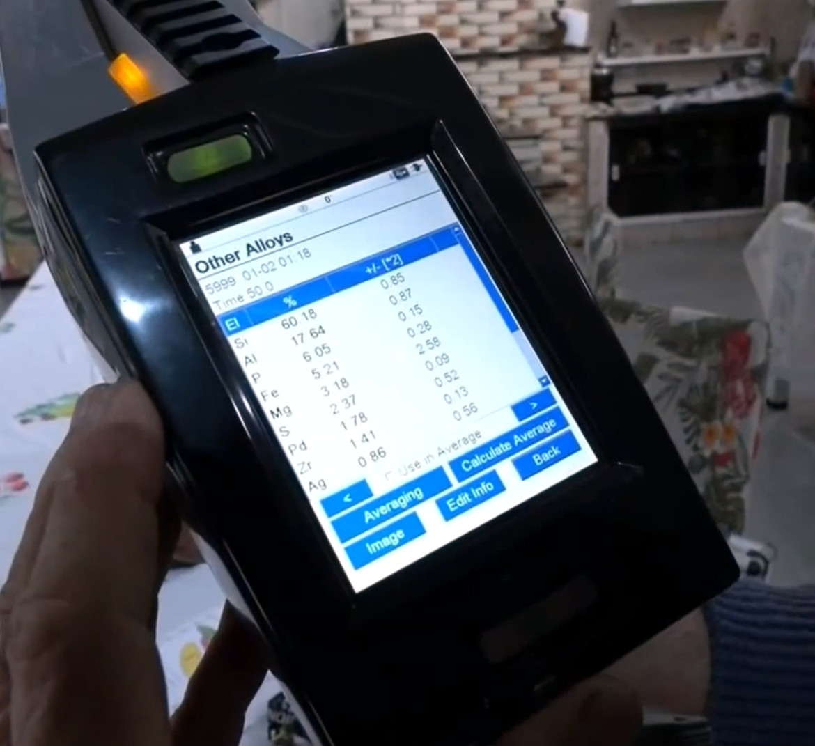 XRF elemental percentage data. If these results are correct and the device was correctly and long enough applied (must be at least 60 to 120 seconds, not 50), we believe they seem to indicate a rather terrestrial origin of the stones, for instance because of the very high silicon, and thus SiO2, percentage. [This evaluation was confirmed on 8 August 2025 (BRT) by Raman spectroscopy analysis at Cefet.] Image: Globo (6 August 2025)
