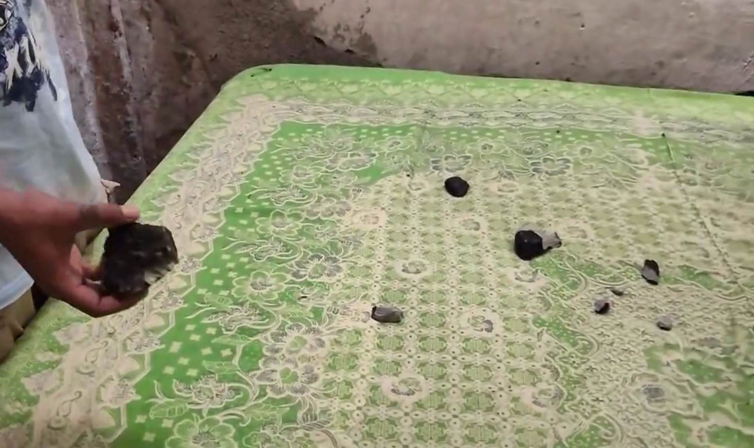 On 14 November 2025 news about another fragmented meteorite mass were published in social media by a meteorite dealer. The found meteorite mass reportly pierced the roof of a farmer’s house, hit a wall and fragmented into six larger and many smaller fragments which were found on and next to the bed. A farmer and his wife, while sitting and chatting, heard three detonation booms and minutes later some impact on the roof of the house. Inside, on the floor and a bed, they found broken roof tiles and meteorite fragments. Initially they thought a neighbour had thrown a stone on their roof. They started an investigation in the neighborhood. Then while scrolling through social media posts the farmer reportedly came across a post about the meteorite fall in Jatilaba. He decided not to through away the meteorite fragments and roof debris and informed two relatives who live nearby.