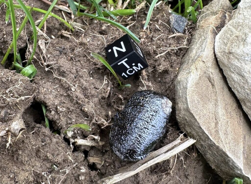 Videos showing the excavation of the 308.1-gram meteorite. Videos: Jeff Makkos (24 March 2026)