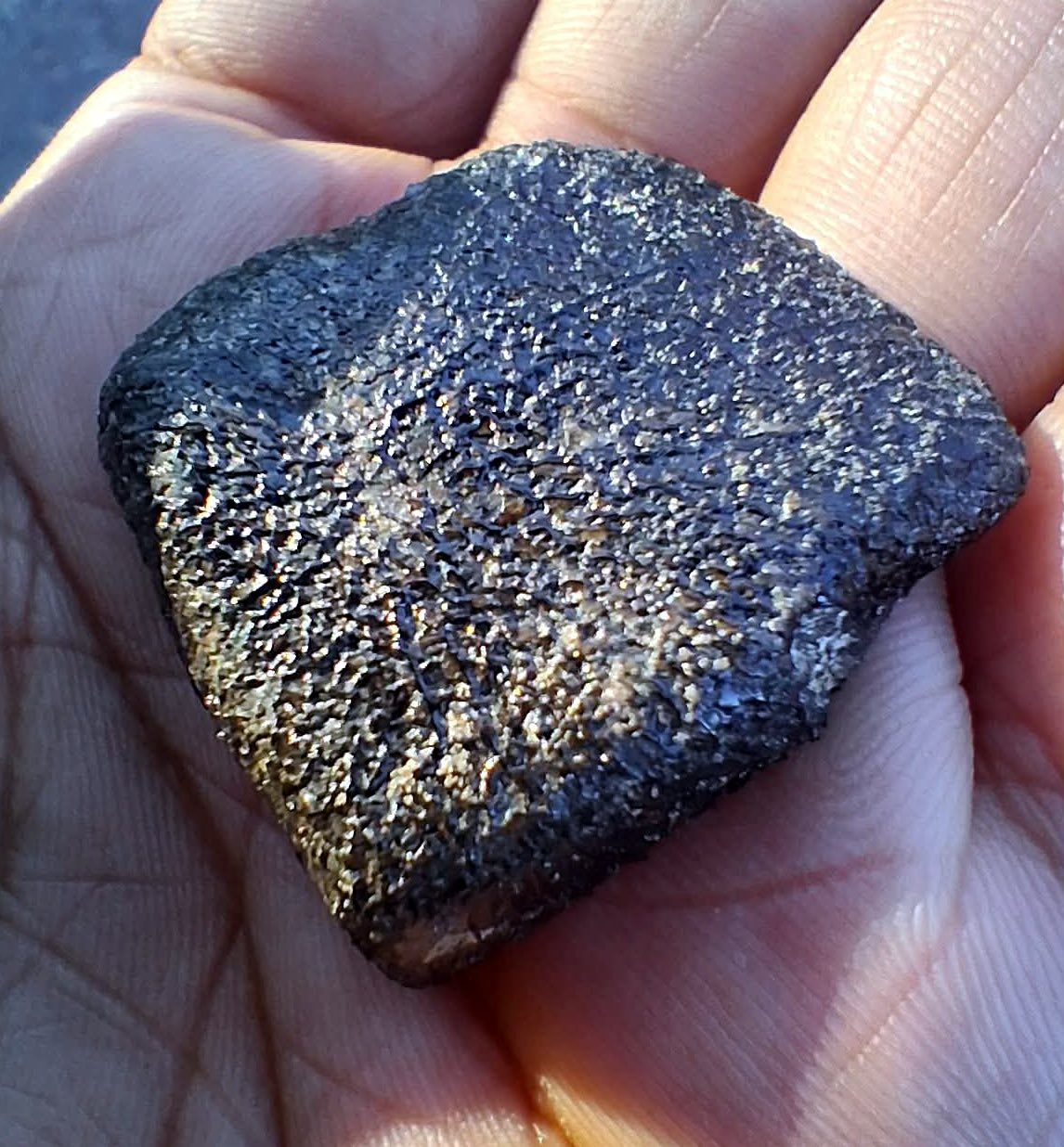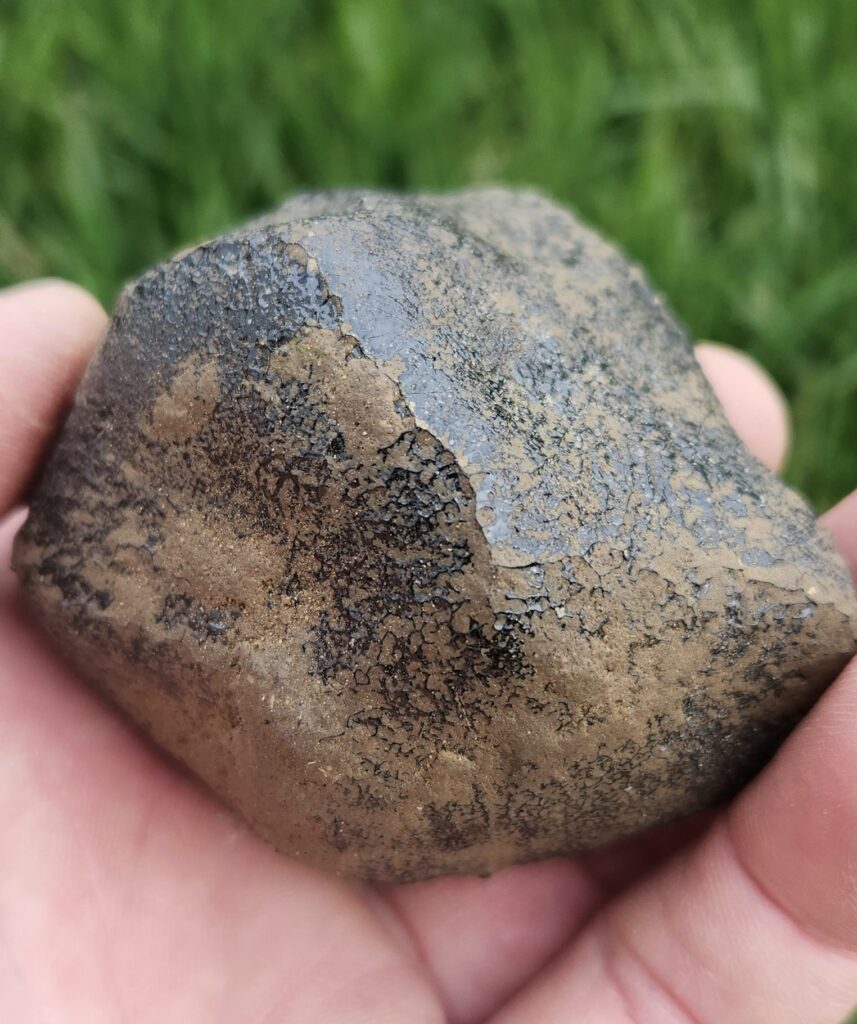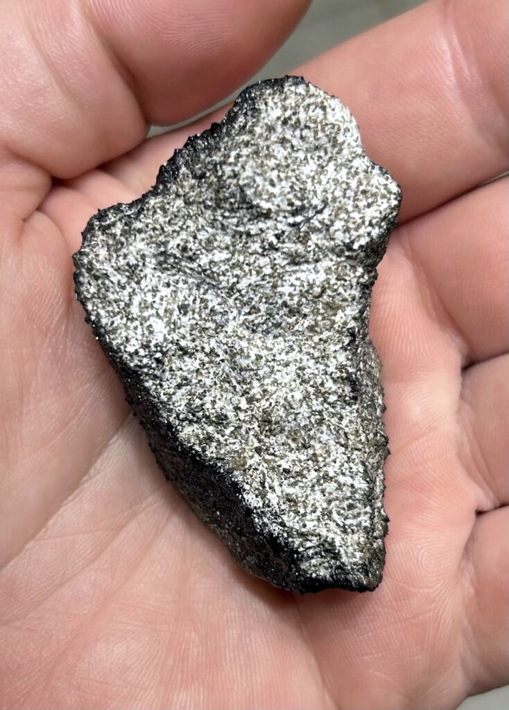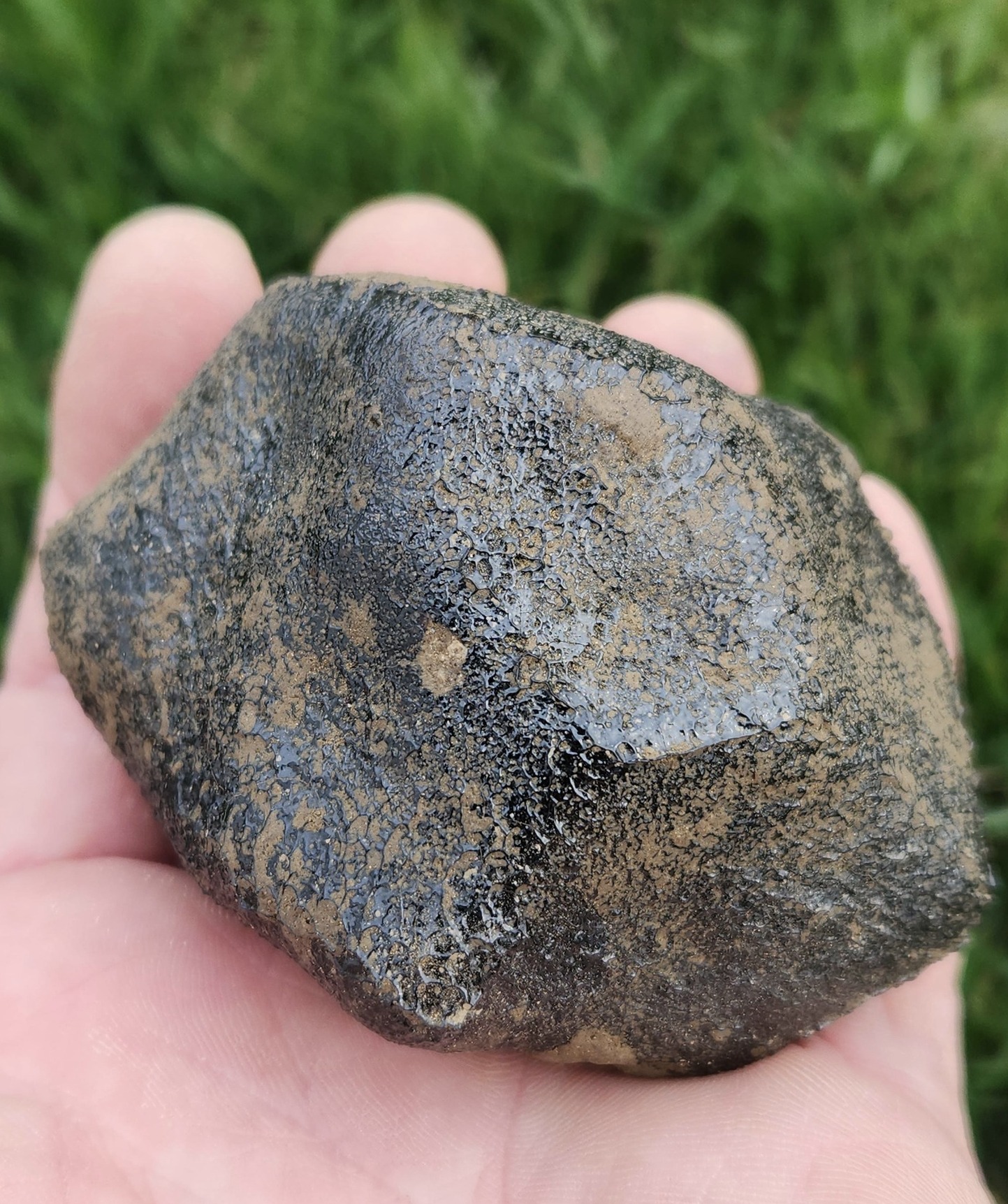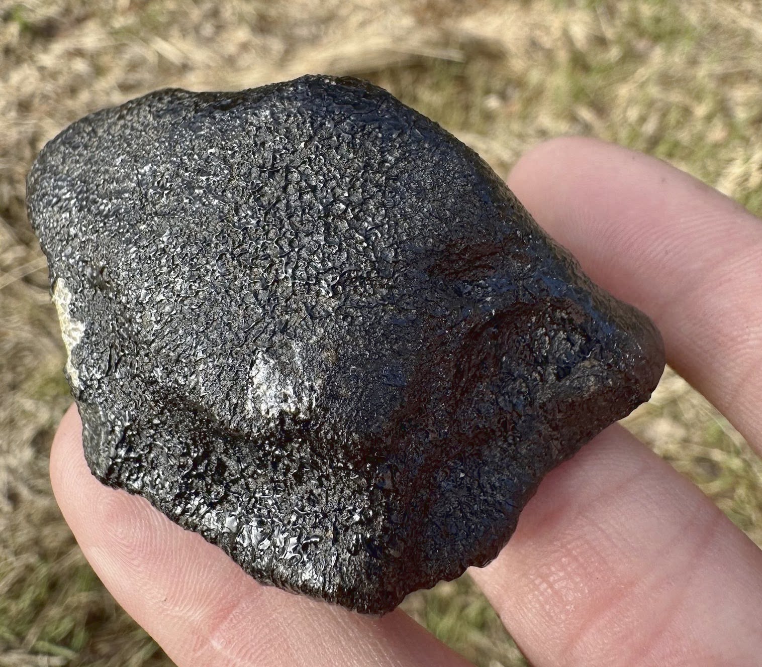 Oriented and fully-crusted 11.1-gram specimen found in Sharon Center by Gabe Leidy (39) from North Ridgeville, Ohio in the afternoon of 18 March 2026 after searching for about an hour and a half.