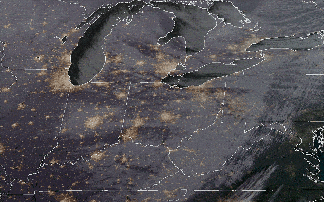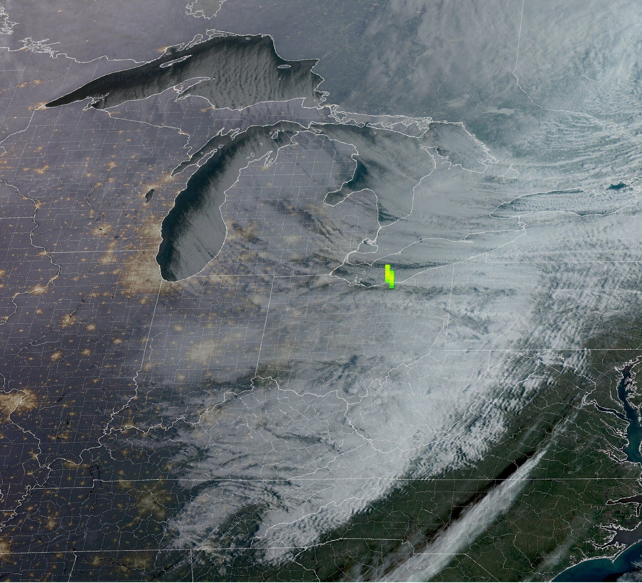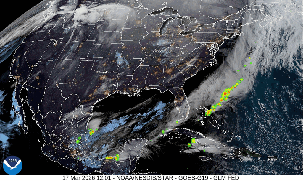 Bolide above Cleveland, Ohio, recorded by NOAA’s GOES-East ‘Geostationary Lightning Mapper'(GLM), a near-infrared optical detector, at 9:01 am ET (13:01 UTC) on Tuesday, March 17, 2026. (Image: NOAA GOES EAST)