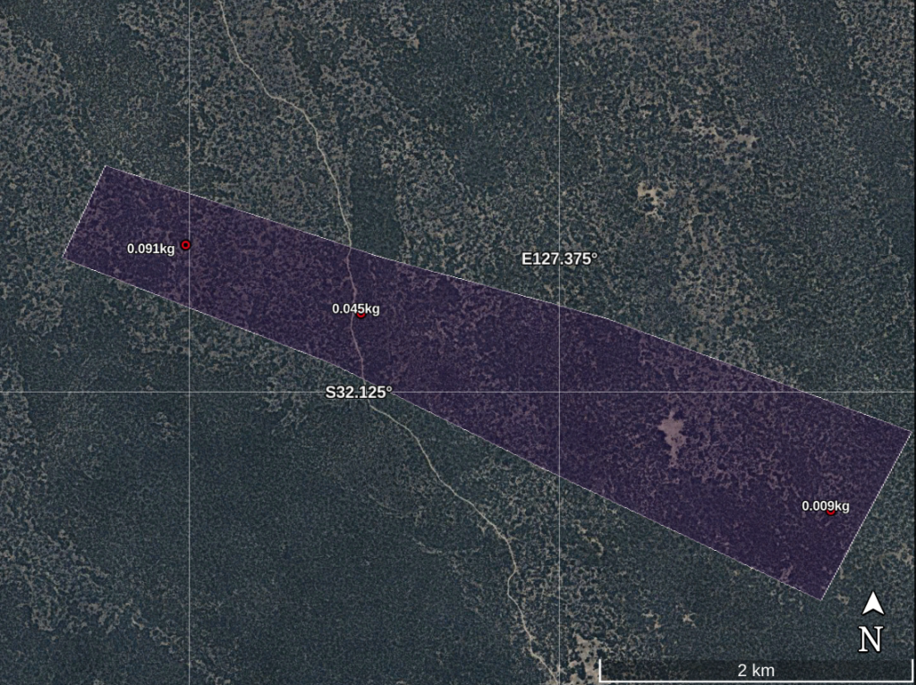 Calculated search area. KML of search area (download link). Image: Desert Fireball Network (DFN)